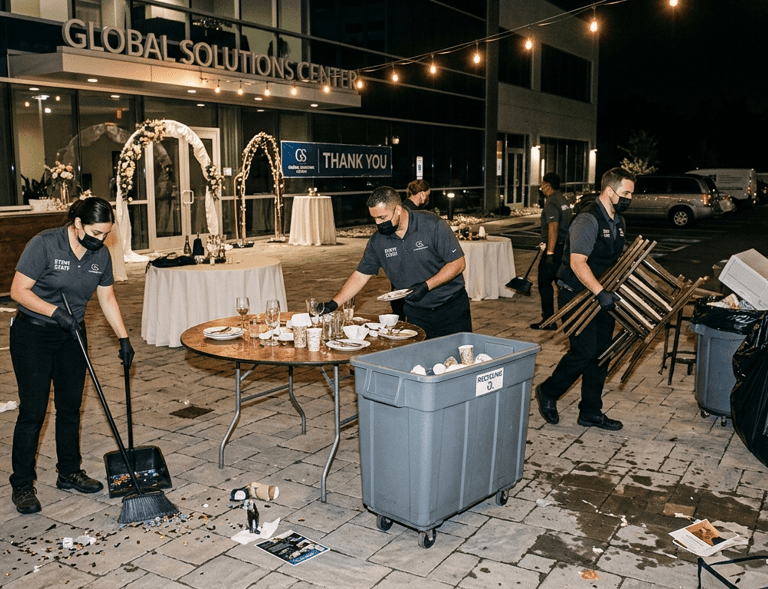 After the celebration, we swiftly handle trash disposal and deep cleaning, leaving your venue spotless and ready for its next chapter.